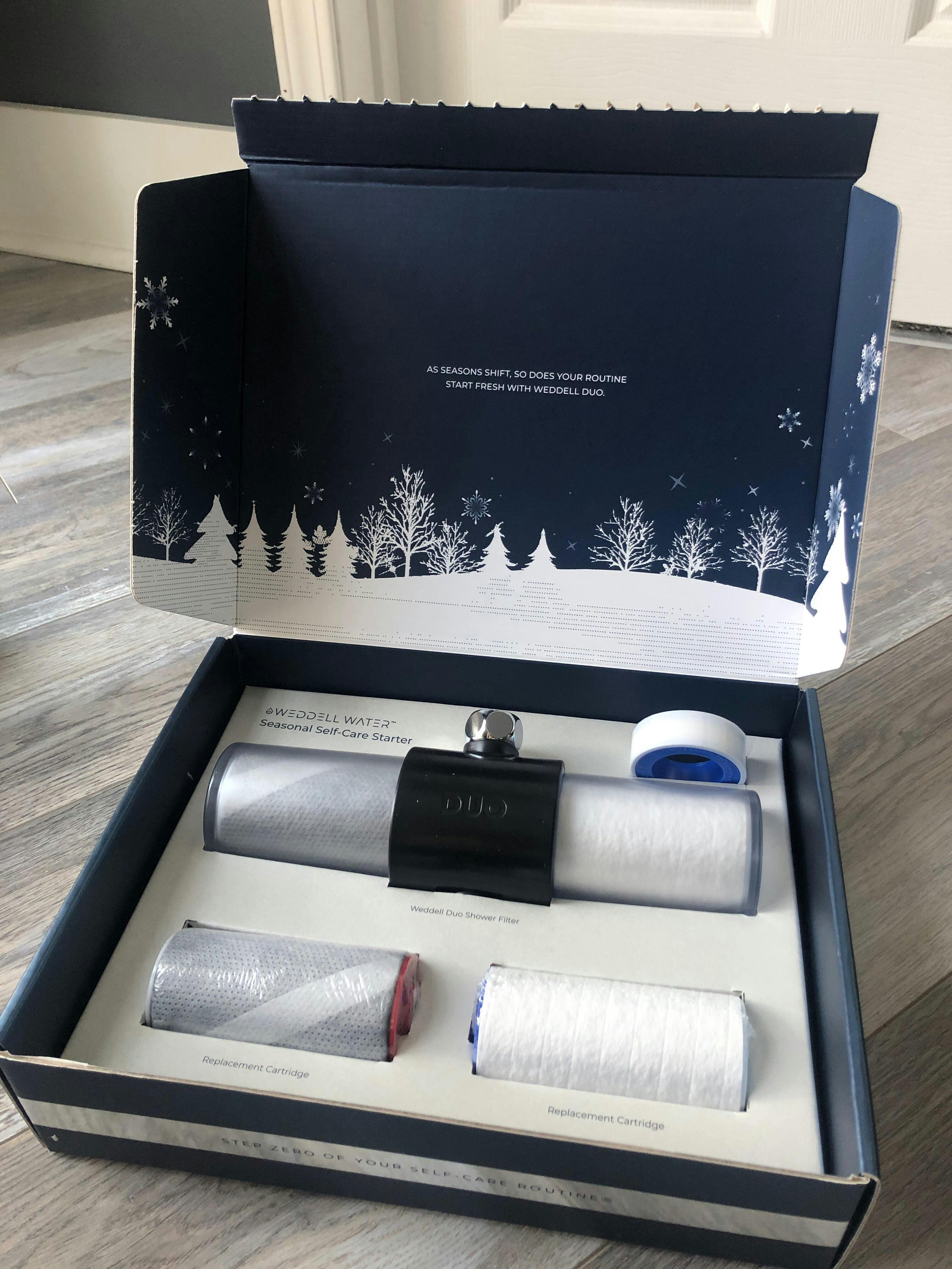 Welcome to step zero of your self-care routine® — now in a giftable holiday edition. The Seasonal Self-Care Starter is a WeddellWater.com exclusive and our best-selling bundle, designed to help you begin your clean water journey with the award-winning Weddell Duo Shower Filter.